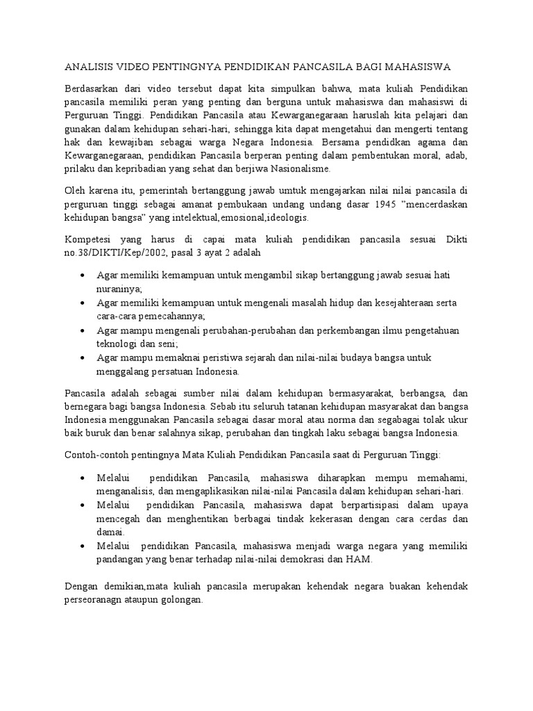 Analisis Video Pentingnya Pendidikan Pancasila Bagi Mahasiswa Pdf